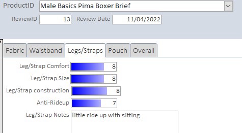 The fabric is a very soft and smooth material. The addition of spandex gives is a nice stretch property, scoring 1.5 inches on the stretch test. It’s a thin material that is only a little see-through when stretched. The material is breathable and mostly moisture wicking. The cotton does tend to feel damp when the temperature gets up in the high 70’s. I haven’t encountered any chafing, bunching, or wedges’ with this underwear. The weave of the fabric didn’t pull any hair on the legs or elsewhere. The fabric feels strong with no sign of pilling, fading or degradation in the material at this point.
