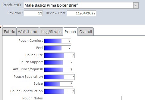 These guys sport a soft comfortable pouch that keeps the goods centered and separated from the legs while I was sitting or upright. The pouch provides good support and has adequate room with no squashing or pinching. The pouch’s design contributes to its ability to provide lift and support. The design also produces a moderate bulge effect.