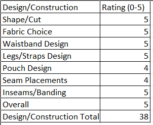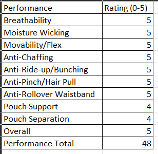 The thin microfiber fabric is very breathable and moisture wicking with almost a cooling feel against the skin. The stretch and elastic properties of the fabric and stitching moves and flexes with every body movement. I haven’t experienced any chaffing, rub spots, skin pinching, or hair pulling. The waistband did not roll over, twist or sag. The legs didn’t ride up or bunch and no wedgies in the rear. The “3D” contoured pouch provides very good support and with its forward lifting properties, provides separation of the genitals from the legs.