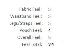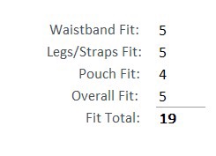 The waistband is mid-rise on the waist. This one is sized as a large and fits me as it should. The elastic material has enough elasticity to keep it snug and in place but doesn’t cut in. The legs fit very well with a mid thigh coverage with no restrictions. The pouch is more of a traditional fit with some 3D contouring that provides adequate room for the package. Overall the underwear gives a from-fitting wear without compression.