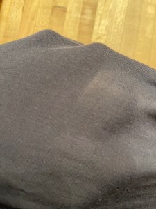 The legs are about 4 inches in length and are hemmed at the bottom with a stitched fold of the bamboo material. Here too, I think there is a strip of elastic band material included in the stitched seam.