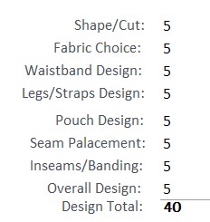 • 1 piece of the micro mesh fabric that forms a gusset section that is used to complete the inner part of each leg and also attached to the bottom of the rear seat and bottom of the pouch section. This gusset is the “Anti-Chaffing Glide Zone”.