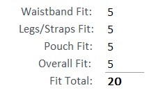The waistband has a great fit with the thick and wide elastic material that rides on the body about mid-waist. The legs fit well, snug with no restrictions. The pouch is a good fit with the added 3D contouring which provides plenty of room for the guys. It all has a nice soft, form fitting wear.