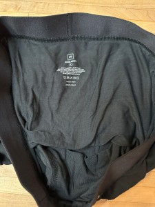 The legs have 3.5-inch inseam and are hemmed with a fold of the main fabric that has a small strip of elastic material sewn into the fold.