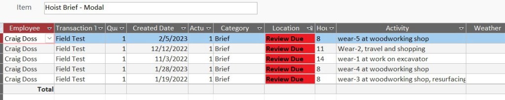 Mckillop’s Hoist brief has been out on the testing range 5 times for about 49 hours of wear. The wear time has been a mix of activities from operating heavy equipment at work, working at my woodworking shop and some travel and shopping time.