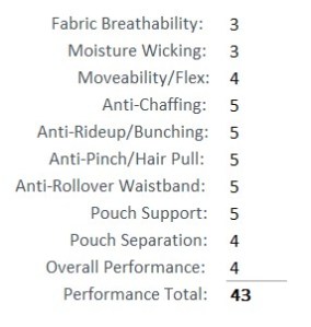 The cotton fabric used in this brief is somewhat breathable and moisture wicking, it will feel damp at the end of a hot day’s work. With the high hip cut legs and the spandex blend in the material, the brief does provide good movability and flexibility. I experienced no pinching, hair pulling, chaffing or rub points. With no leg coverage, there has been no bunching or ride-up problems. The waistband stayed in place and there has been no rollover. The pouch does provide support for the genitals and keeps them separated from the legs. Overall, this brief performed well under my working conditions and other activities.