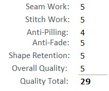 The stitching and seam work on these briefs are of very good quality. I have found no loose threads or stressed seams. There is some minor pilling of the fabric at a few of the usual friction points at the front of the pouch in on the seat. I do not detect any color fade of the fabric. The entire underwear has retained its original shape.